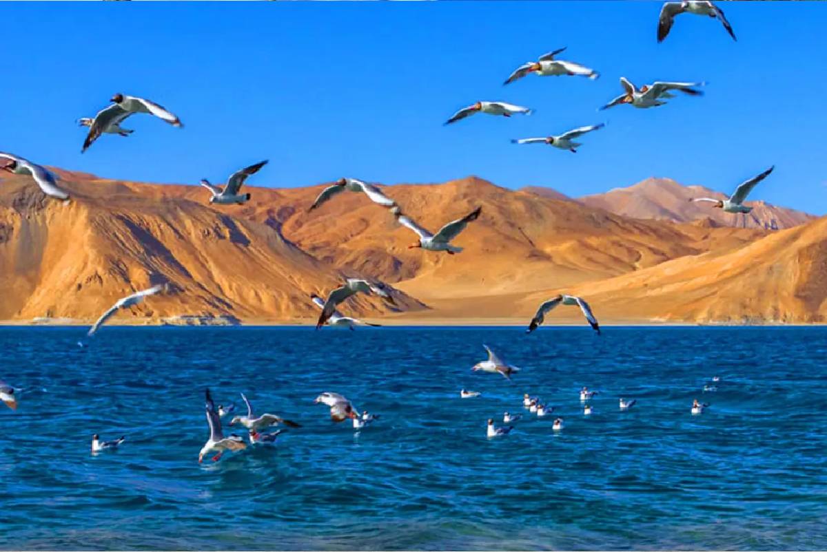 Discover a variety of birds in the serene surroundings of Pangong Lake. The peaceful environment makes it an ideal spot for bird watching, where you can observe unique species in their natural habitat, adding a refreshing and engaging experience to your stay.