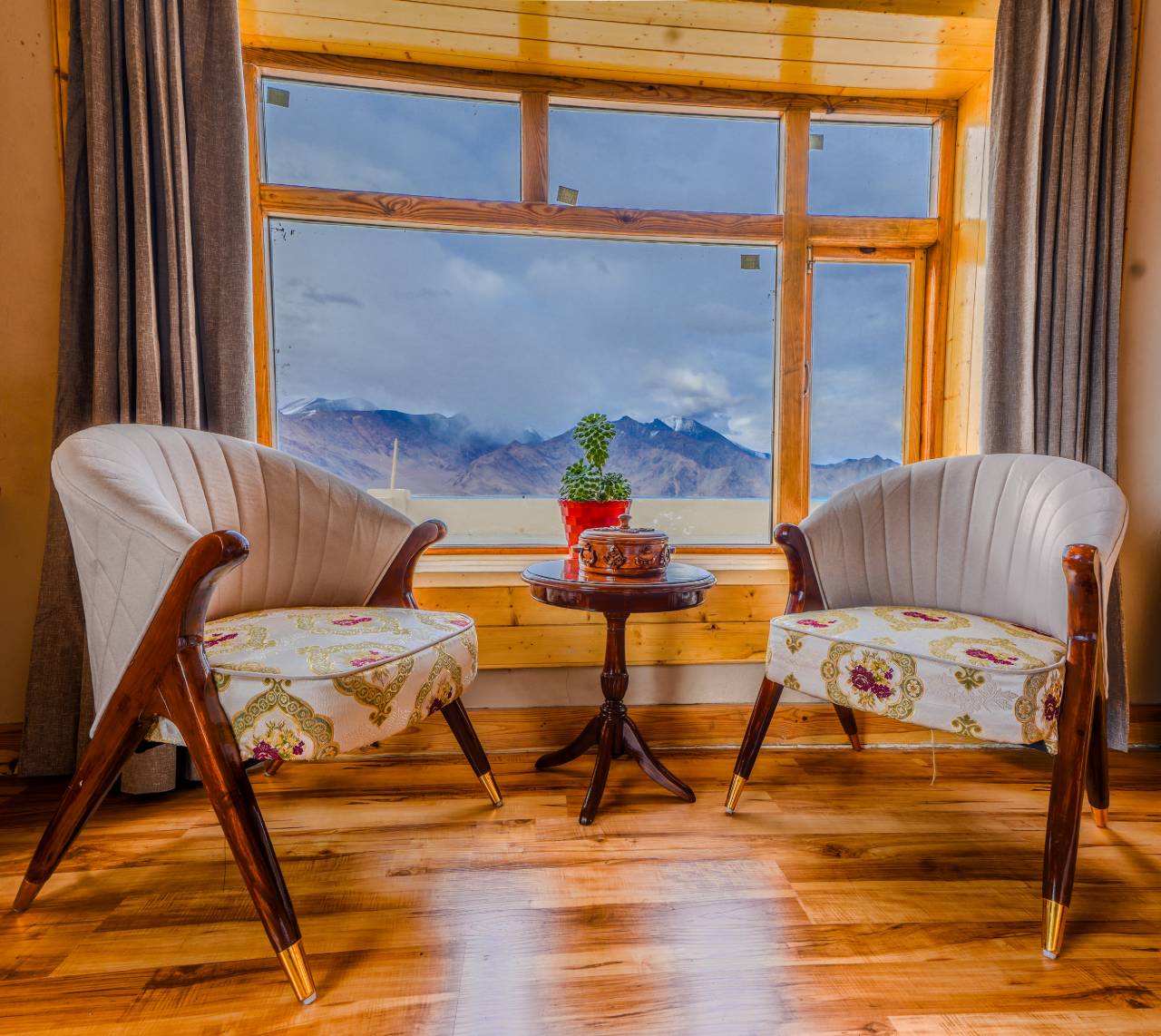 Nestled in the serene beauty of Maan Village near the breathtaking Pangong Lake, The Thangjing Pangong offers a perfect blend of comfort and natural charm. Surrounded by majestic mountains and crystal-clear waters, the hotel provides a peaceful retreat for travelers seeking relaxation and scenic beauty. With its luxury and spacious rooms, thoughtfully designed interiors, and modern heating facilities, guests can enjoy a warm and cozy stay even in the coldest weather conditions.